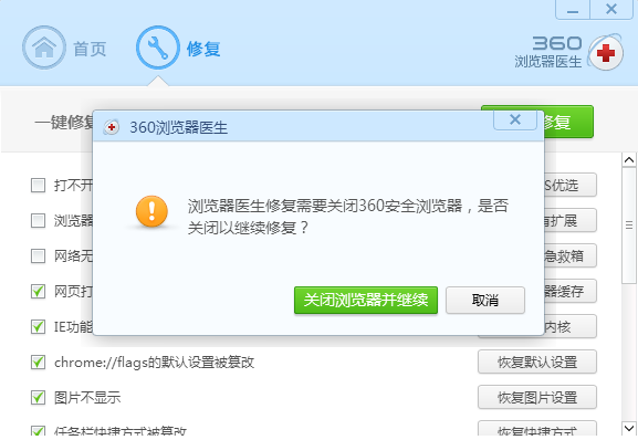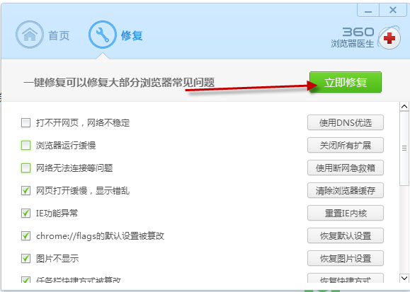 2、进入以后我们直接点击一键修复来完成浏览器各个问题的修复工作