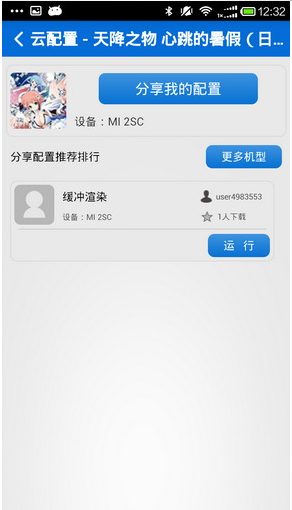 ☆使用步骤:启动游戏-->设置PSP游戏参数配置-->退出游戏后返回到云配置分享界面-->点击【分享我的配置】-->填写参数后点击【确定】-->分享成功后点击【更多机型】-->从列表中点击【运行】
