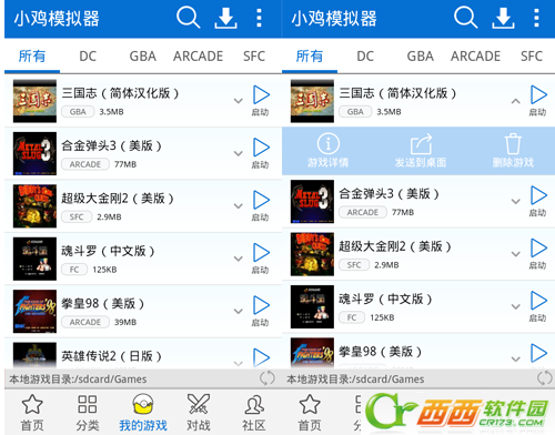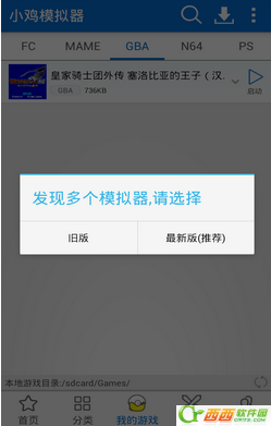现在的PSP、GBA、SFC、MD、FC、GBC、DC等模拟器均已更改为内置,若有安装旧版小鸡模拟器助手,可选择从旧版启动,方便兼容旧版存档