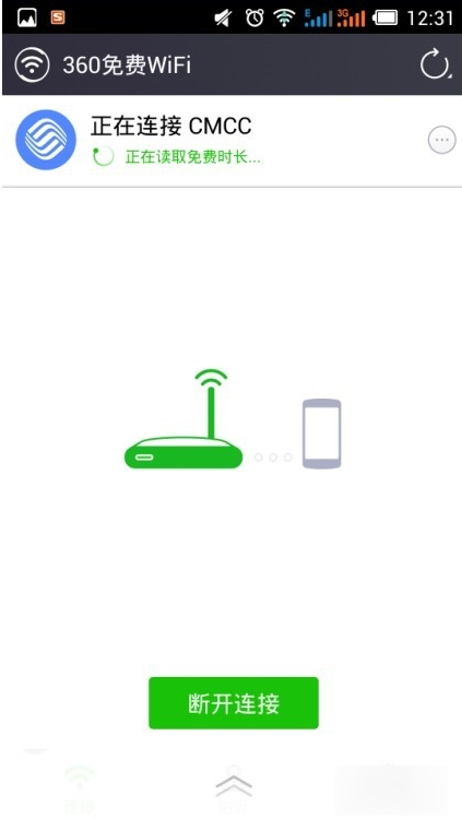 3、正在获取免费时长连接中,不需要360WiFi时也可点击断开连接按钮。