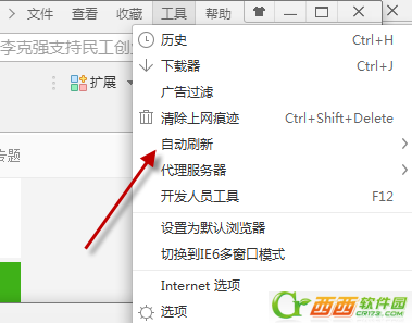 5、打开工具找到自动刷”,然后鼠标点击自动刷新,此时网页就会按照你设定的时间间隔自动刷新了!