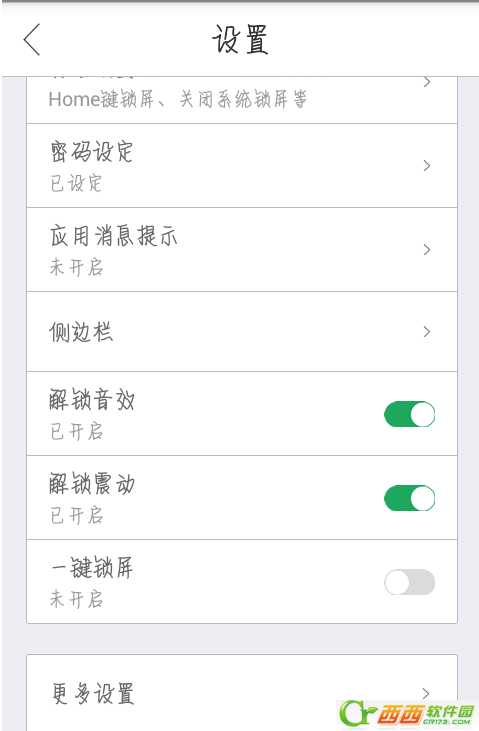 5、密码设定好后返回设置界面,滑到最底部找到更多设置并点击