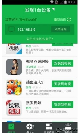 1.自动扫描、连接局域网里的智能电视和盒子;