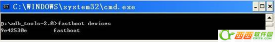 使用USB线连接手机和PC机,打开PC机的命令行窗口,进入ADB安装目录,确认手机与PC连接正常,确认方法为在命令行窗口输入fastboot devices,可以看到正常连接的信息,如:9e42530e fastboot。