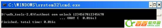 在PC机命令行窗口中输入fastboot oem unlock ****************,*号为16位解锁密码,例如:fastboot oem unlock 1234567812345678。