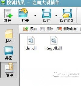第一步,把“dm.dll”和“RegDll.dll”添加附件里: