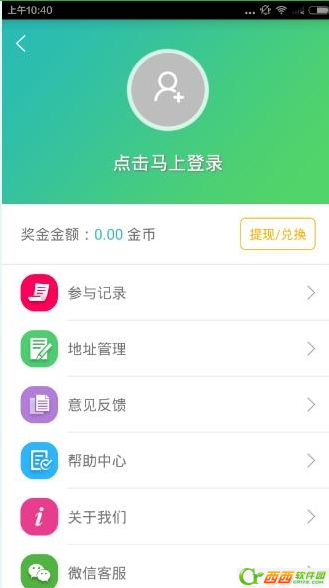 点击首页的右上角的人,您可以查看您的奖金金额可以提现和兑换