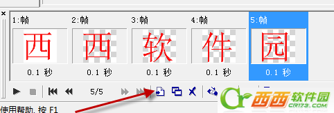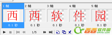 6、如图,在第一帧中只显示“西”,其实的图层“眼睛”单击关闭。第二帧只显示“西”,依次显示效果如图。