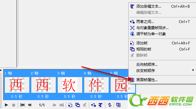 7、选择所有帧,右击在弹出的菜单里选择“画面帧属性”
