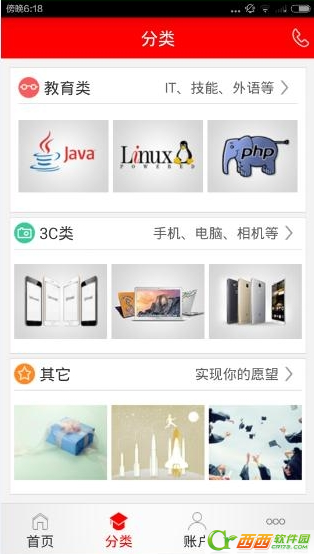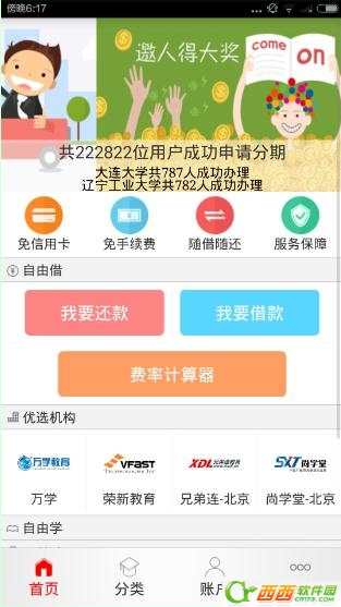 2、在分类界面,有着教育类,3c类还有其他的商品可有分期付款
