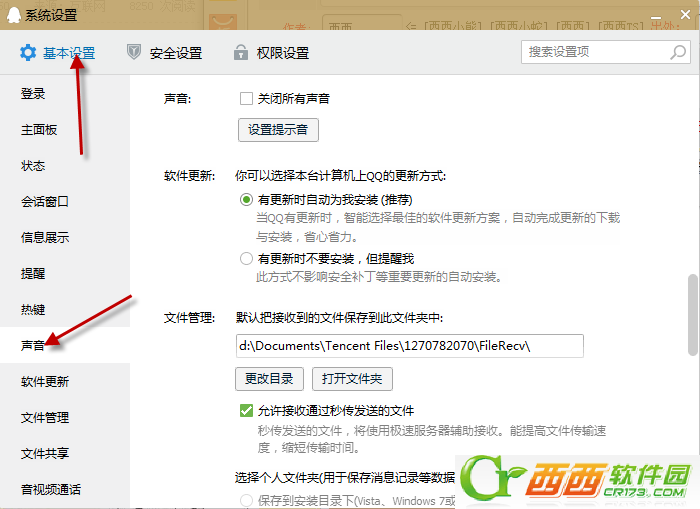 3、然后选择基本设置里的声音选项