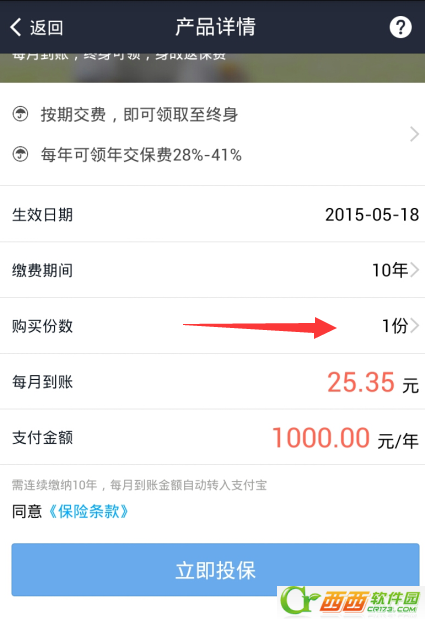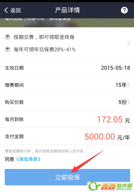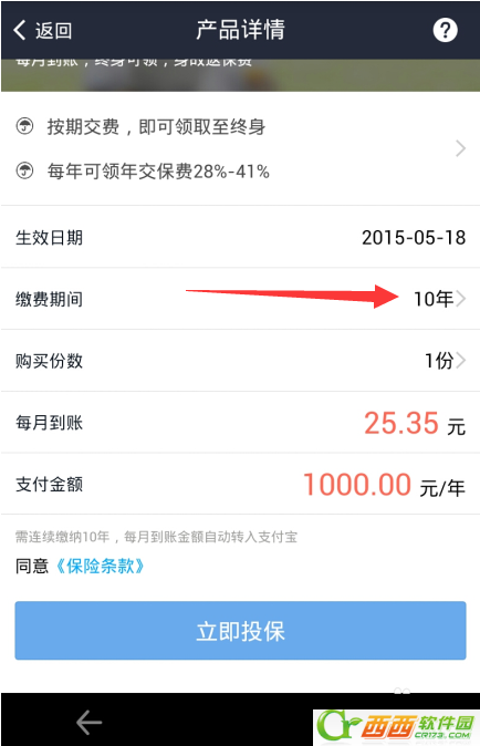 7、都设置完成之后会进入到如图所示,此时就会重新显示每个月到账的金额是多少,每年要交的金额是多少,如果觉得没有问题的话,那么就单击”立即投保“选项。