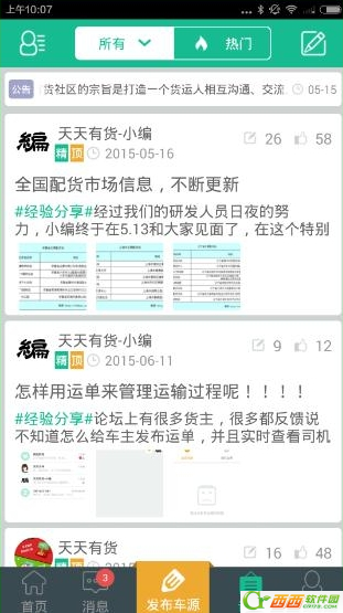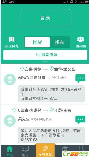 1、在首页,您可以看到最新的货源信息,可以找车,找货,还有朋友圈