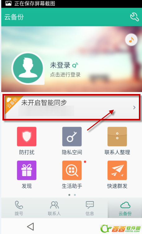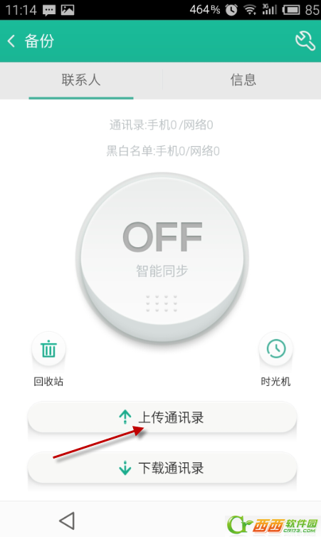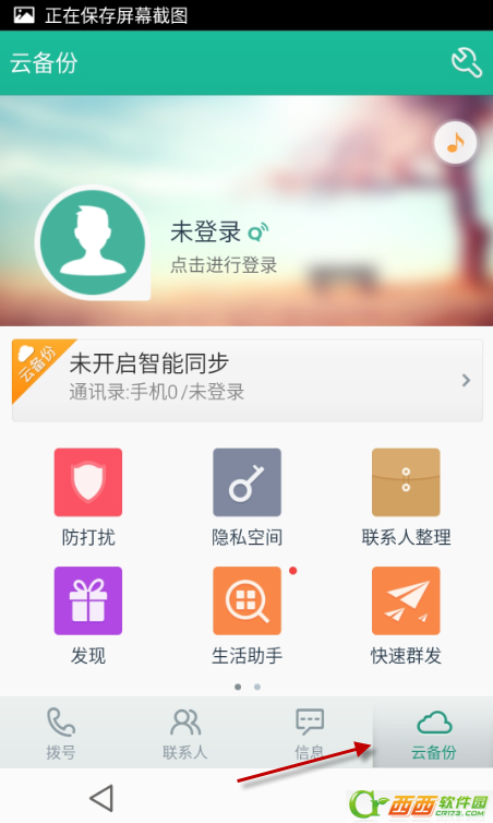1、打开和通讯录,进入首页点击右下角云备份按钮
