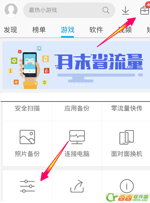 2、你要么直接点击悬浮窗点击设置,或者打开应用宝点击[管理]