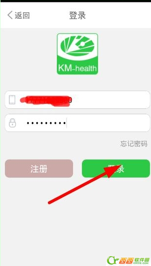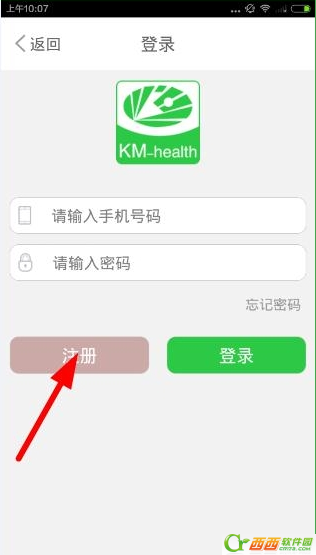 1、打开康美医疗app,弹出登录界面,没有账号的朋友店家注册
