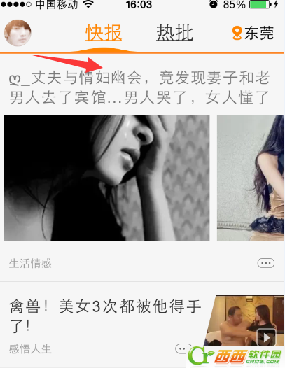 4、登陆后,返回到应用首界面,我们点击某一新闻查看