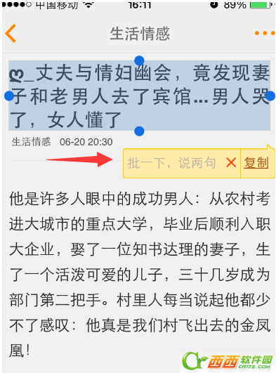5、进入到新闻内容查看页面后,我们点选任一内容,发现在下方弹出“批一下,说两句”的提示窗口