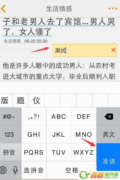 6、接着,我们在窗口输入想要评论的文字,然后点击“发送”,在该段被我们选择的文字下方可以展现我们刚刚的评论
