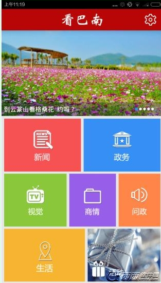 1、打开看巴南app,在看巴南首页上,有着新闻,政务,视觉,商情,问政,生活和活动7大模块