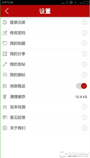 2、点击右上角设置按钮,在这您可以登陆注册,修改密码,查看您的收藏,分享,发帖等等记录