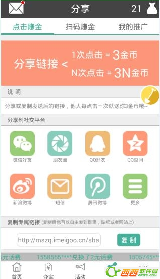 4.在分享界面,您可以分享给您的好友,来赚取金币