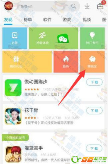 1、打开手机中的应用宝,点击“赚钱宝”进入活动。