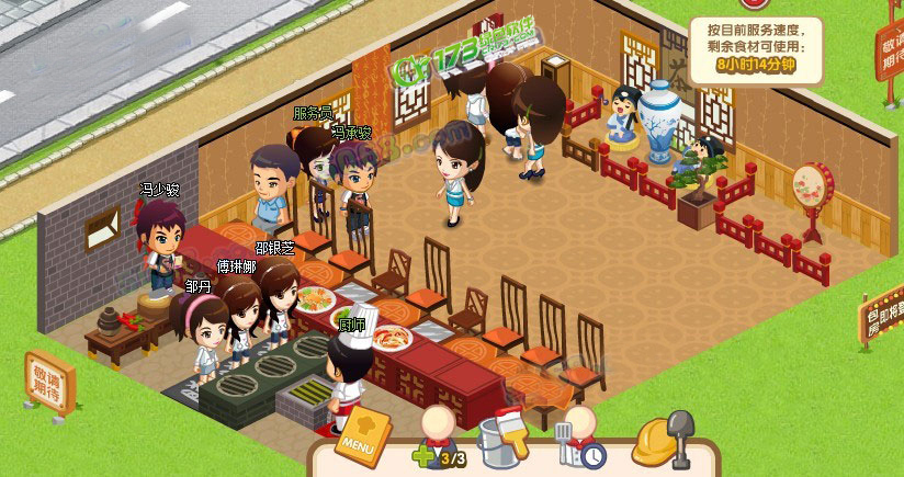 4、0到10级可不请服务员或厨师,10到20级请2厨2服便可,