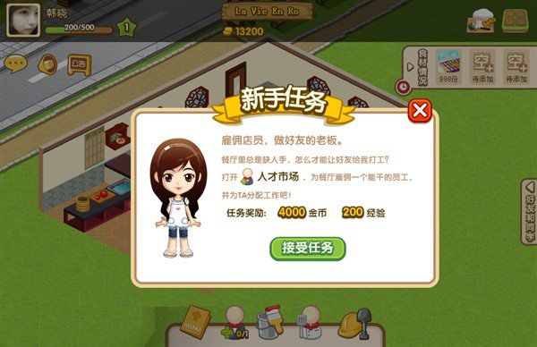 第六张图是要完成第一个任务的把食材买起餐厅买在添加食材的时候下面有个用农场的作物就可以减少餐厅里面的金币,这就说明没有开餐厅的还是种些餐厅需要的作物