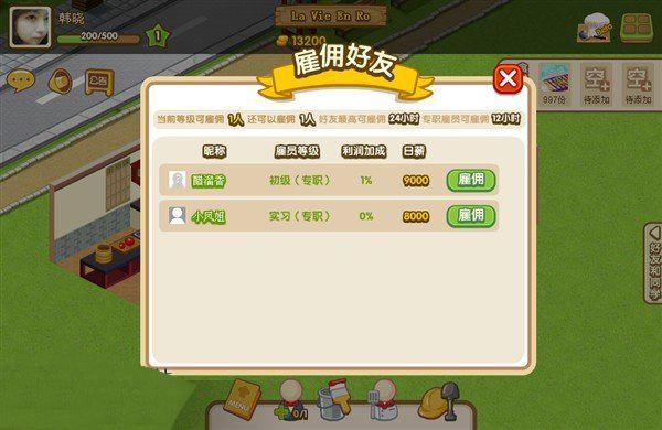 利润家成,在qq校友的好友里面,刚出来的都是百分零但是经常给雇佣了的那个利润就会加,在以后的雇佣好有的时候要雇佣那些利润加的高的,不要以为那些利润加的高的 日薪 高就不雇佣了,那些加了利润的在工作的时候可以加钱那样赚钱就快了,