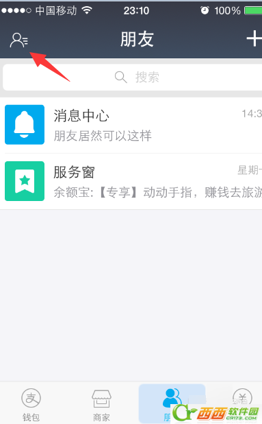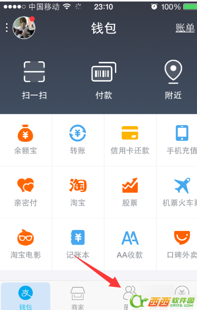 4、还有的用户是在支付宝主界面找到借条功能,这里当然找不到,所以我们进入到主界面后点击下方的“朋友”