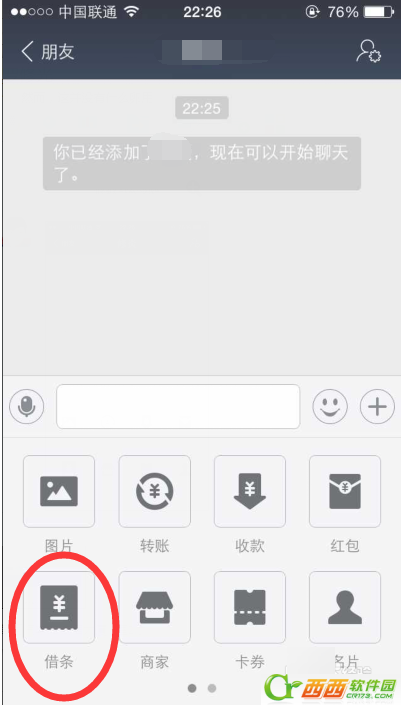7、点击发消息后,在弹出打开来的聊天窗口中点击底部的+图标,然后在点击+图标后下方展现的选项即可看到“借条”功能。