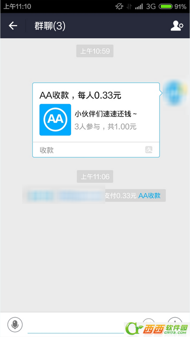 7、填好之后,点击确认,就会把收款信息发到群聊中,小伙伴就会看到