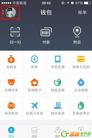 1,登陆最新版本支付宝,进入到主界面,点击左上角的头像