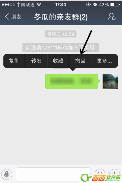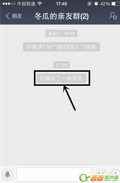 7、这样就撤回了刚才已经发送成功的消息,这个功能大家可以记下,关键时候还是能起一点作用。