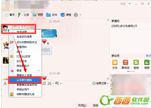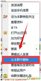5、接下来的步骤和之前的一样,右键单击此人头像,选择【从本群中删除】