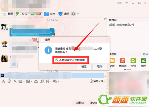 6、在弹出的提示栏中的方框内打√,然后点击【确定】。从此这个人就被删除啦,同时也再也无法加入本群啦!