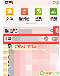 4、如图要删除的这个人不在最近没有发言动态怎么办呢?没关系,我们只需在群右下角位置点击一个搜索图标,输入此人的昵称或者QQ号,找到此人。