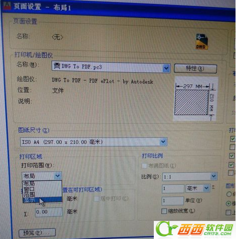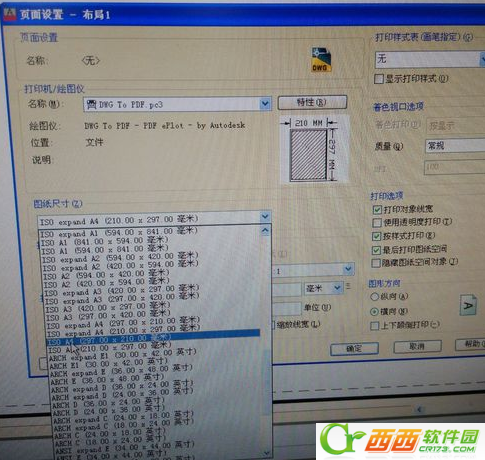 其次修改图纸尺寸,选择你要打印的相应图纸尺寸