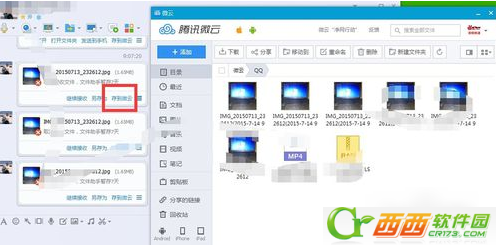 2、我们可以点击“取消”。这时候QQ左边的对话框里面就会有相应的提示,我们需要点击的是“存到微云”