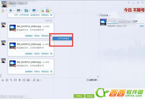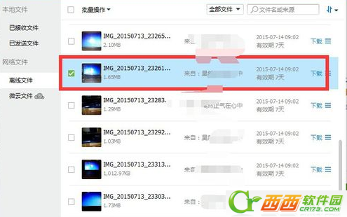 4、在文件助手里面,我们可以找到这张传输未成功的图片文件。我们点击右边的“下载”