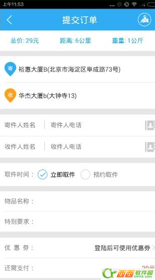 3、在完成资料后,点击下面的提交订单,在支付费用就可以完成下单