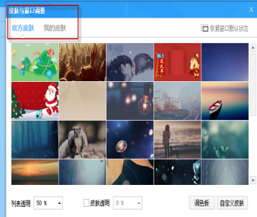 3、在弹出的皮肤与窗口调整窗口中点击《自定义皮肤》在打开你想要更换的皮肤。