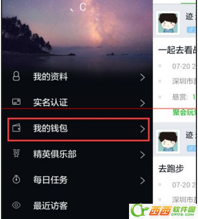 2、在划出的侧边菜单里选择“我的钱包”