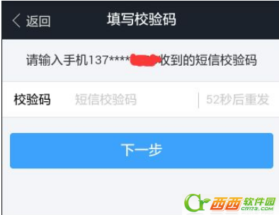 5、手机会收到短信,填写验证码,下一步