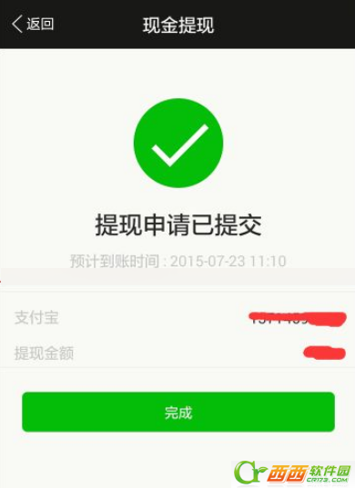 6、提示提现申请提交成功,等待到账即可