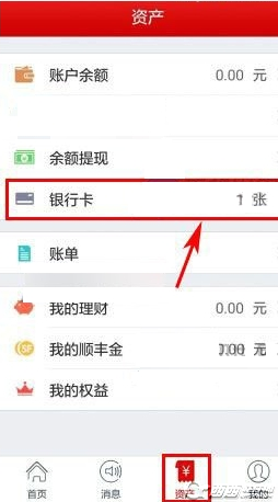 1、打开顺手付,在【资产】栏点击【银行卡】