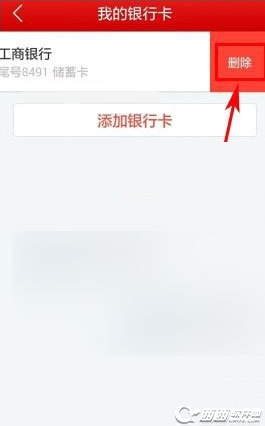 2、然后,在要解绑的银行卡上用手指从有向左滑动