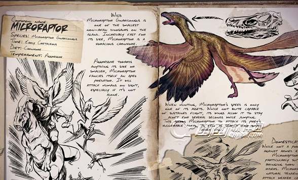 小盗龙是岛屿上体格最小的一种非鸟类之兽足类(Non-Avian)恐龙。拥有其体积下惊人的速度,小盗龙是一种相当贪婪的猎食者。