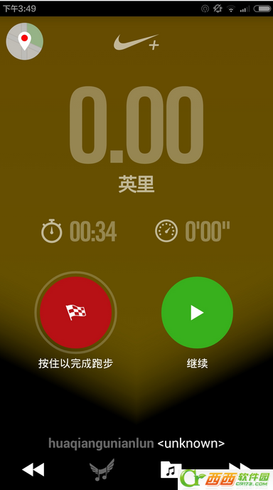 5、不想跑了就点击一下中间的按钮。选择“按住以完成跑步”或者继续